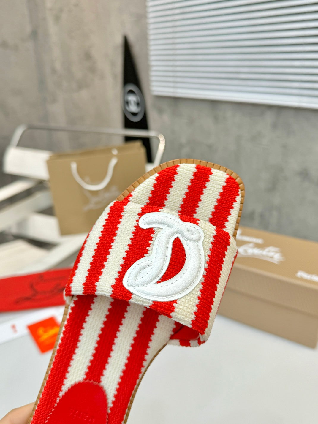 JXA10ZDE Stylish leather + knitted sandals